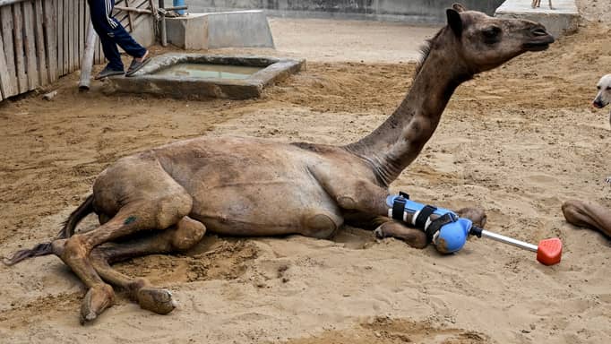 تمكّنت ناقة صغيرة بُتِرَت إحدى قوائمها قبل عام من المشي مجددا في ملجأ للحيوانات في كراتشي بفضل تركيب طرف اصطناعي لها، وهو إجراء نادر في باكستان.