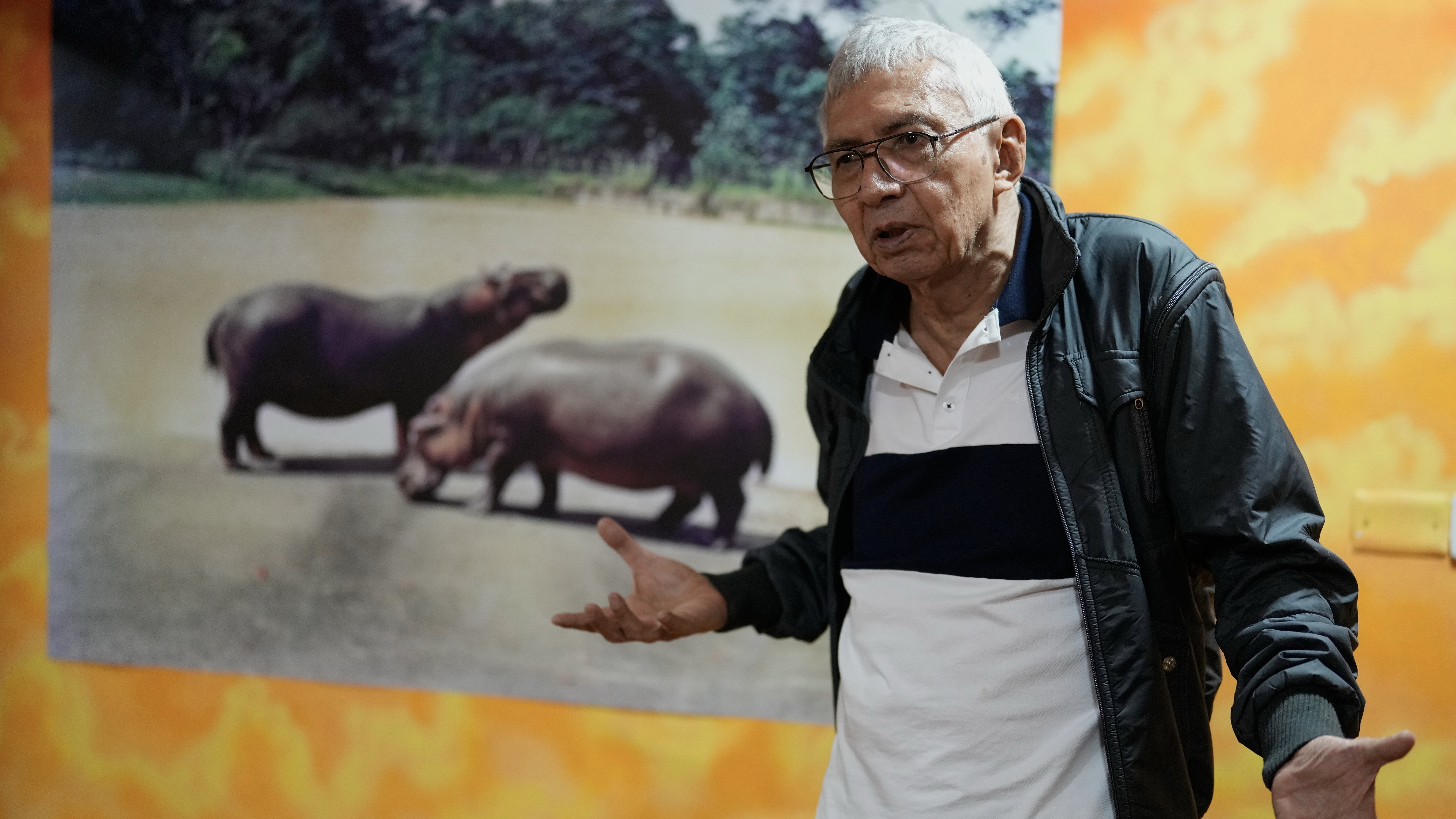 يقول المصور البالغ من العمر 75 عامًا "تم شراء أفراس النهر من حديقة حيوانات في الولايات المتحدة تشتري الحيوانات وتستولي عليها من إفريقيا"، مشيرًا إلى أنه كان مكلفًا أيضًا بحفظ سجل لجميع الحيوانات الموجودة في هاثيسيندا نابوليس التابعة لإسكوبار في شمال شرق البلاد.