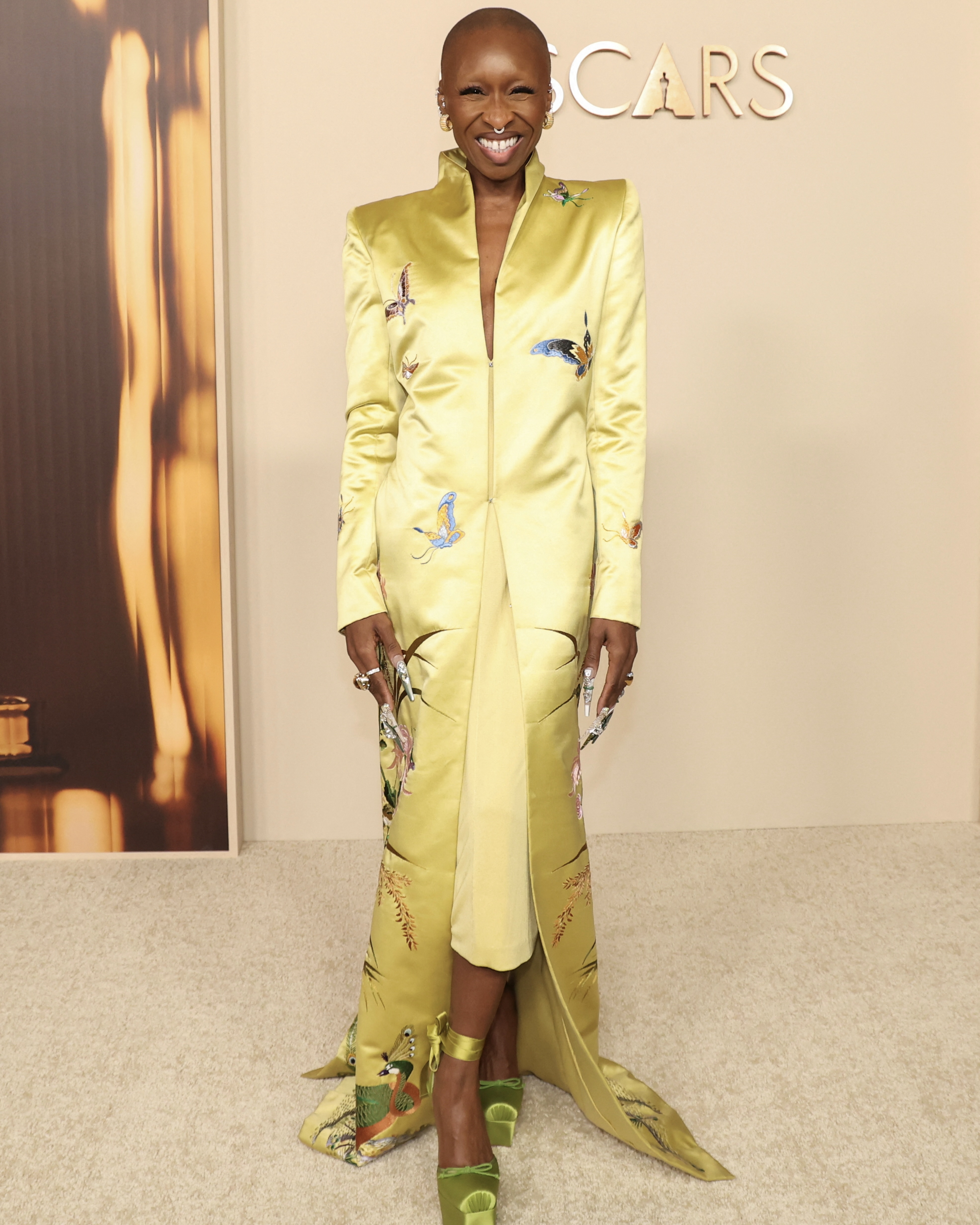 وصل شالاميه، المرشح عن تجسيده للموسيقي بوب ديلان في A Complete Unknown، بإطلالة سوداء بالكامل، وعلق بطاقة اسمه على جيب بنطاله الأمامي.