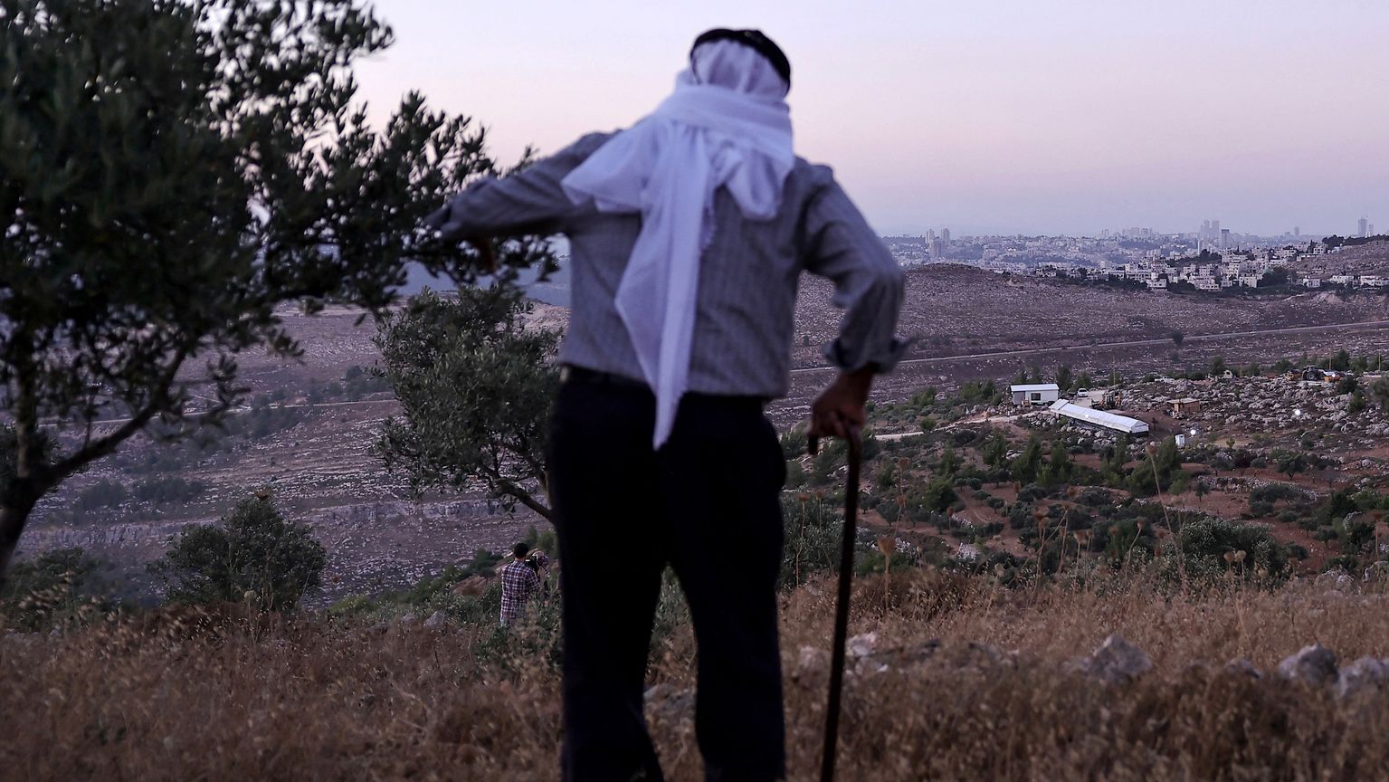 وبالقرب من حقول الزيتون، التي يملكها الفلسطيني العجوز، يبني إسرائيليون بؤرة استيطانية جديدة غير قانونية على أراضي البلدة المدرجة على قائمة التراث العالمي لليونسكو.