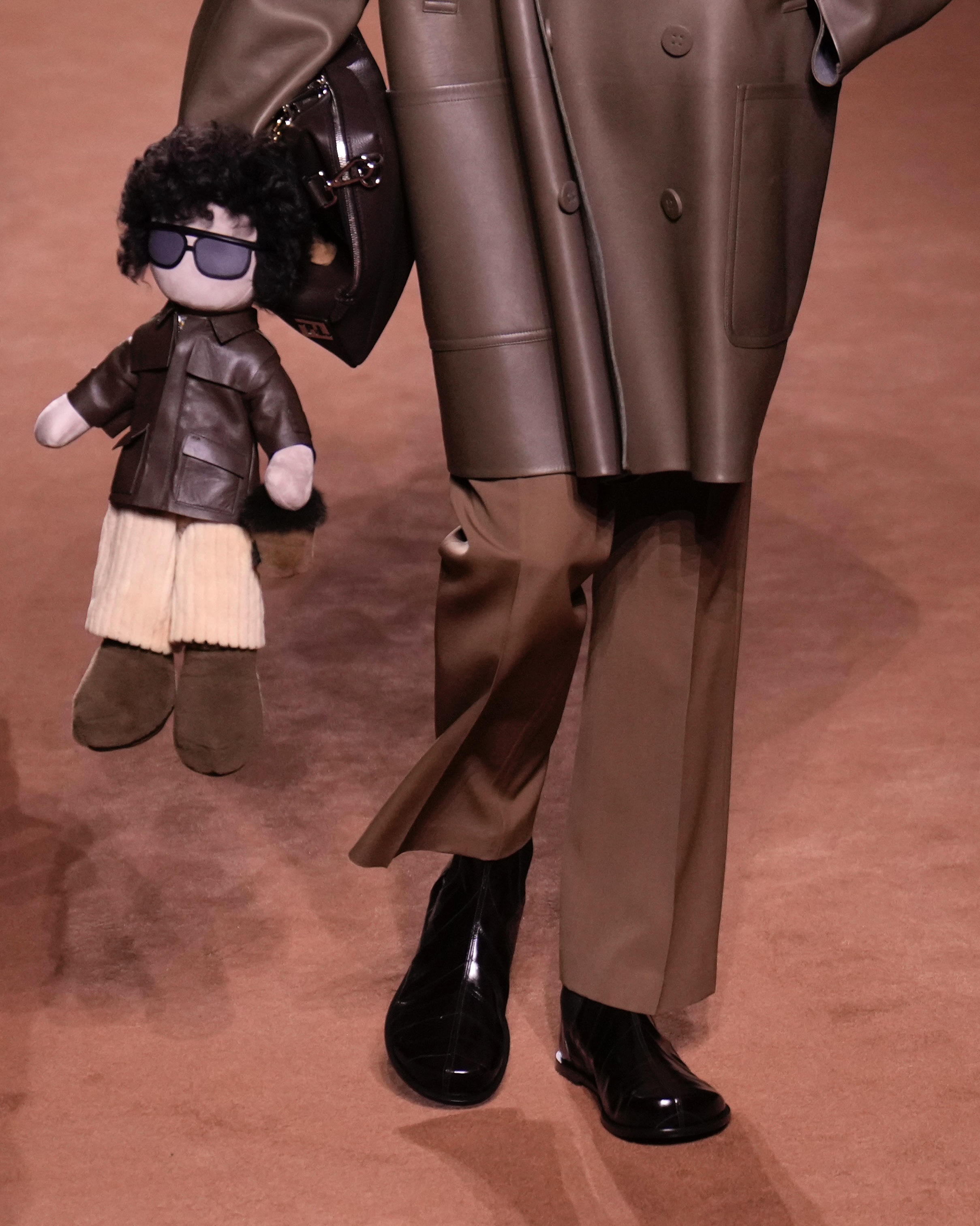 ارتدى التوأمان نسخة طبق الأصل من زيّ الفروسية الذي صممه لاغرفيلد عند انضمامه إلى فندي عام 1965، قبل أن ينطلقا بمرح على المدرج ليجدا نفسيهما في أحضان العائلة.