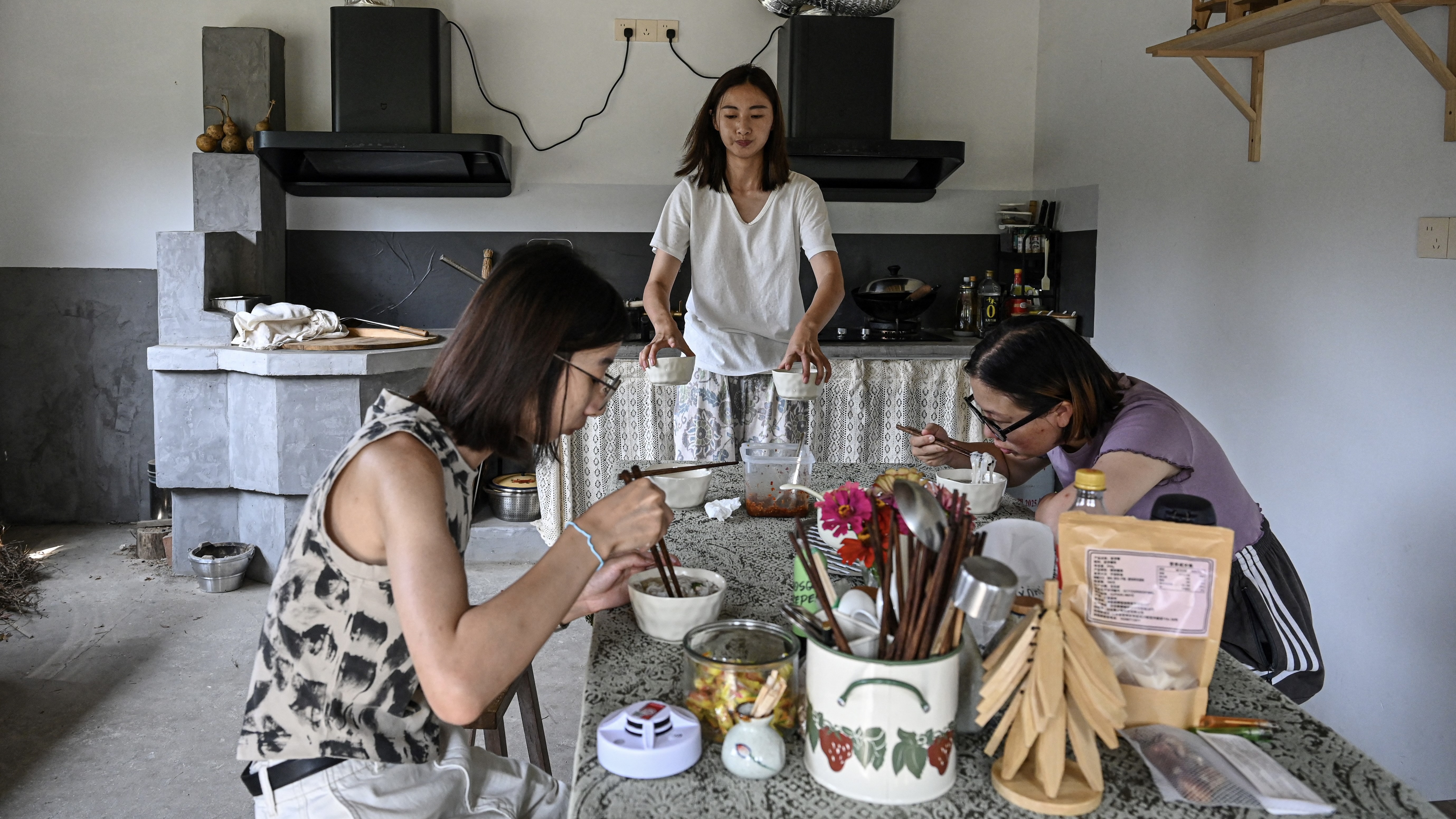تعلو القهقهات أثناء جلسة للّعب وارتشاف القهوة في دارة ريفية في مقاطعة تشجيانغ بشرق الصين هي واحدة من عدد متزايد من المساكن المشتركة المخصصة للنساء فقط، بعيدا عن الضغوط الاجتماعية والأحكام الذكورية.