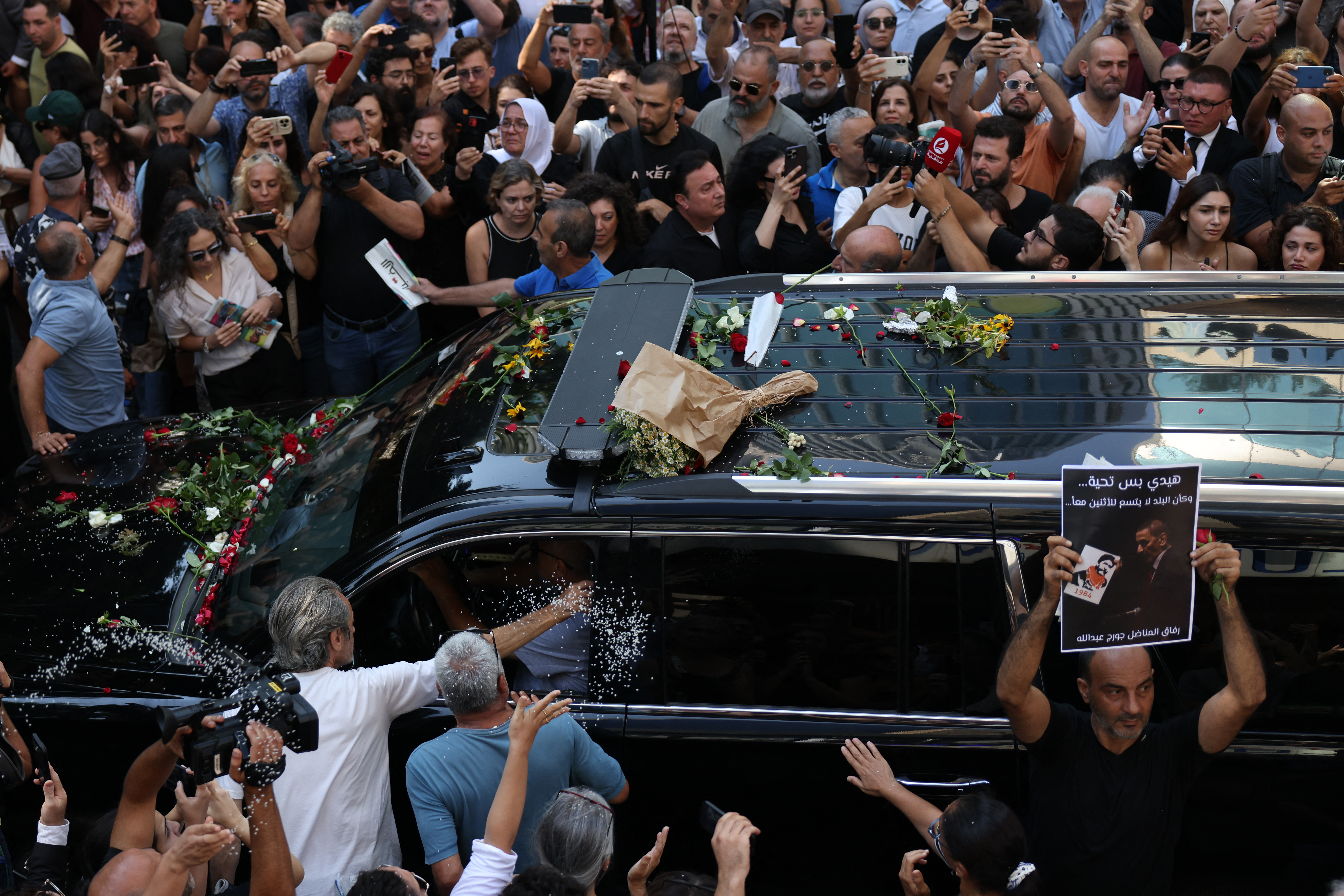 وأحضر كثر من هؤلاء ورودا بيضاء وحمراء وباقات أزهار، وحمل عدد منهم صورا للرحباني كُتب على بعضها "بَلا وَلا شي...بحبّك"، في إشارة إلى عنوان إحدى أغنياته.