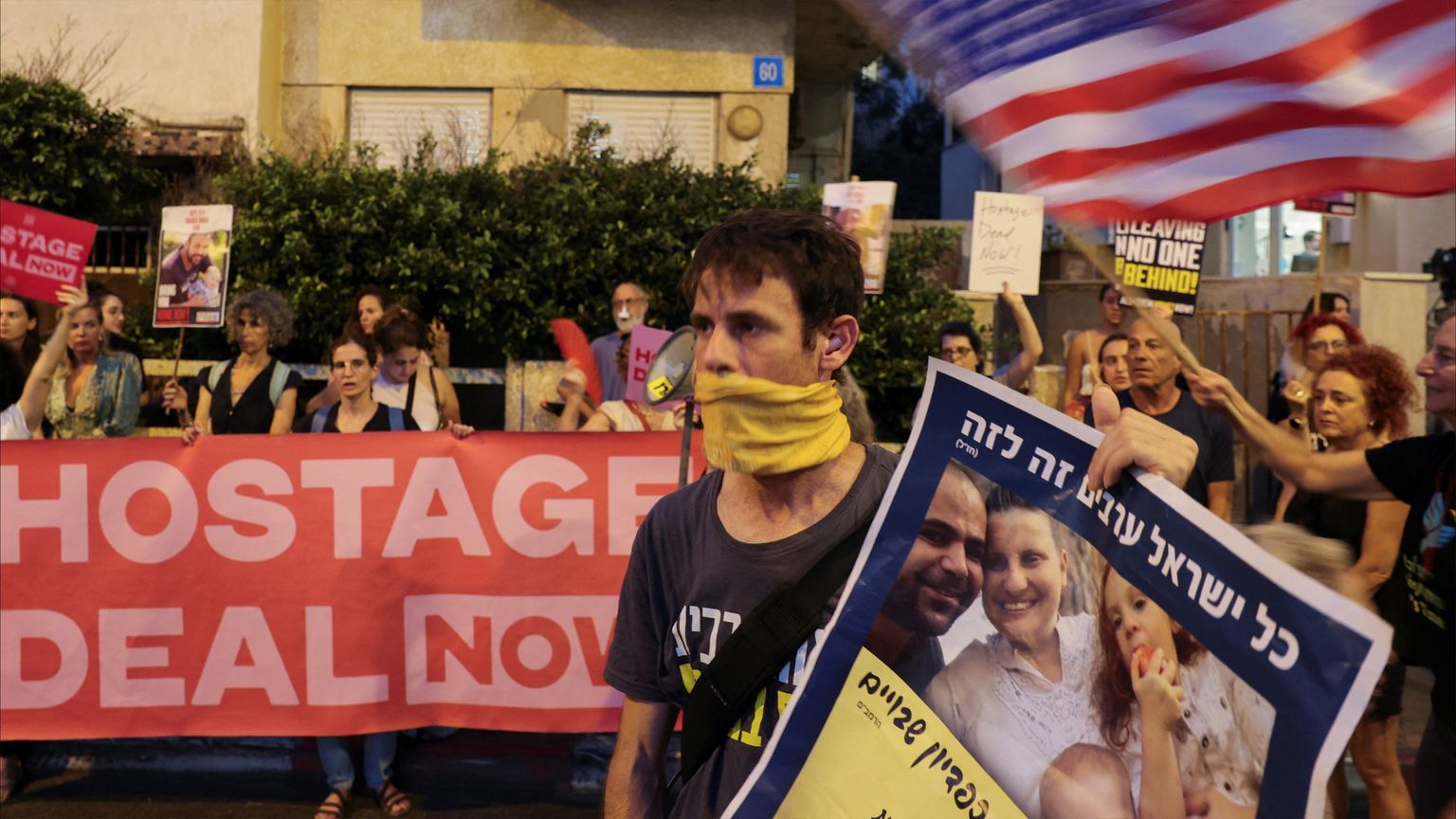 وحمل المتظاهرون لافتة كتب عليها "نتنياهو يضحي بالرهائن"، مع صور للرهائن الستة الذين عادوا جثثا إلى ذويهم، بعد أن اختطفوا أحياء في السابع من أكتوبر الماضي.