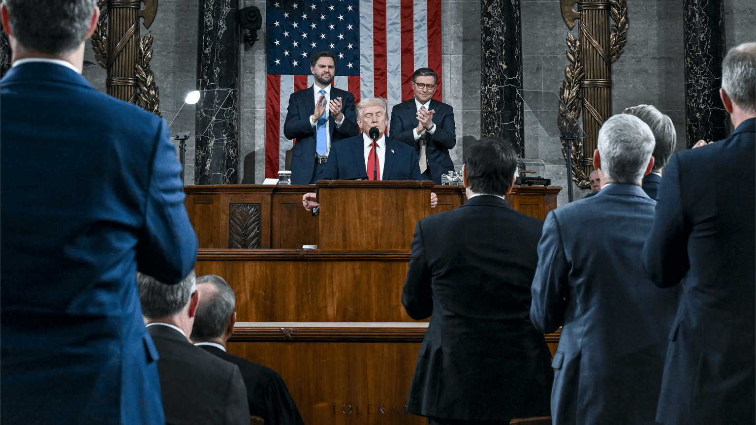 ألقى الرئيس الأميركي دونالد ترامب أمس، الثلاثاء، خطاب الاتحاد أمام الكونغرس في مبنى الكابيتول بواشنطن، عارضا أولويات إدارته في ملفات الاقتصاد والهجرة والتجارة والسياسة الخارجية.