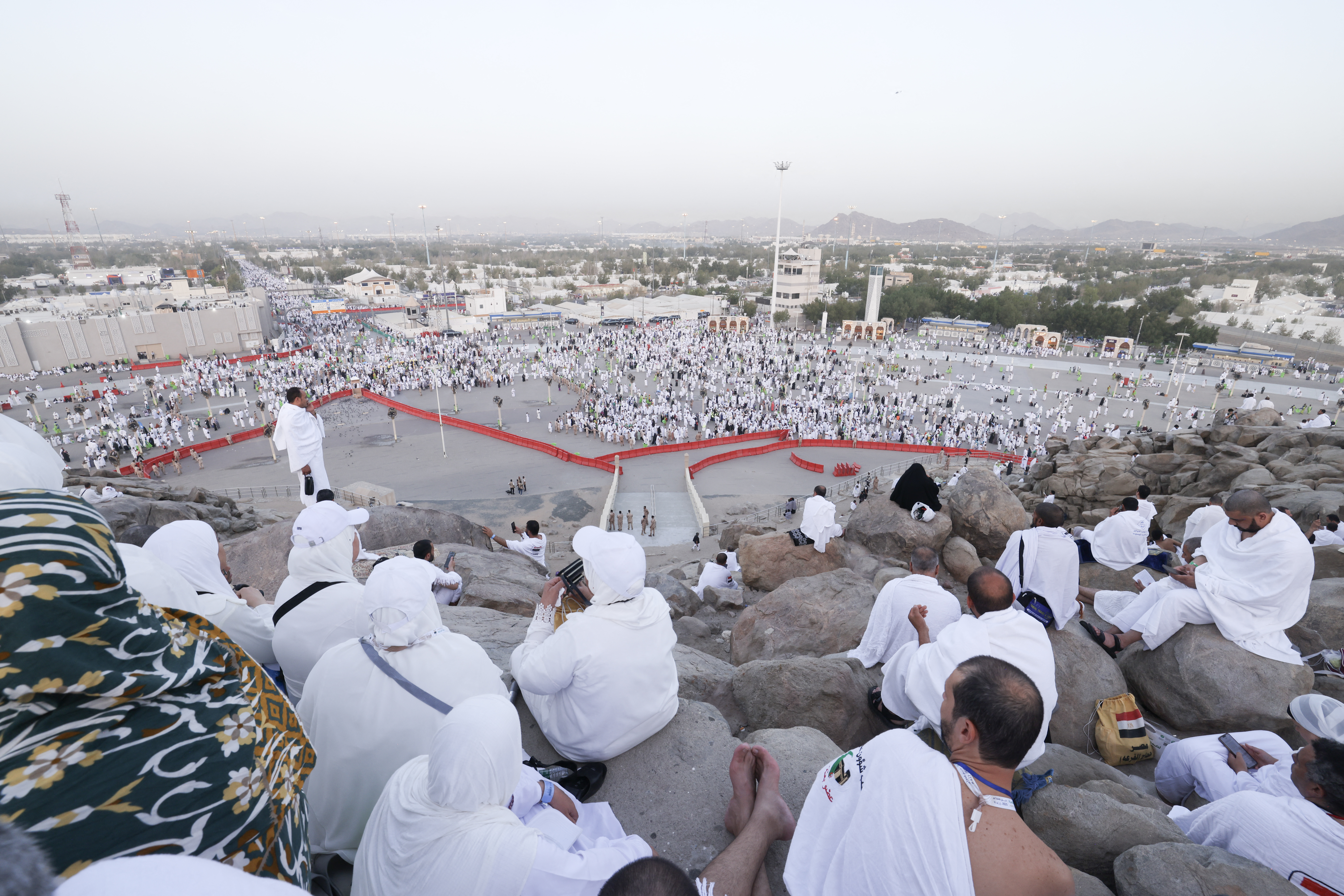 وعند بزوغ الفجر، تجمّع الحجّاج عند صعيد عرفات الذي يبعد عن الحرم المكي نحو 23 كلم.
