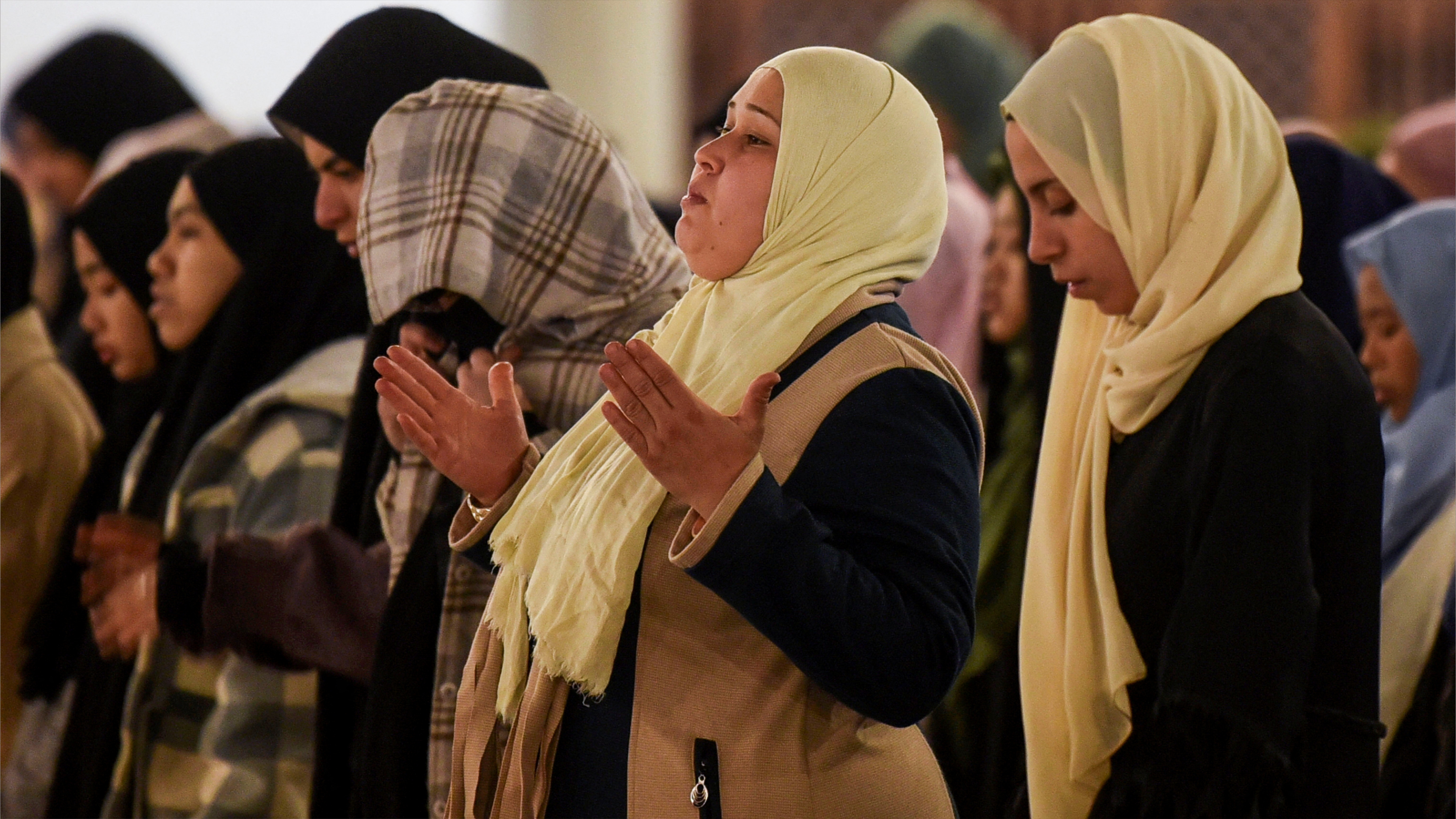آلاف الطلاب في باحة الأزهر في القاهرة عند غروب الشمس.. هكذا يبدو المشهد في شهر رمضان المبارك، إذ ينظم الأزهر الشريف في مصر إفطارا جماعيا لطلابه طيلة أيام الشهر.