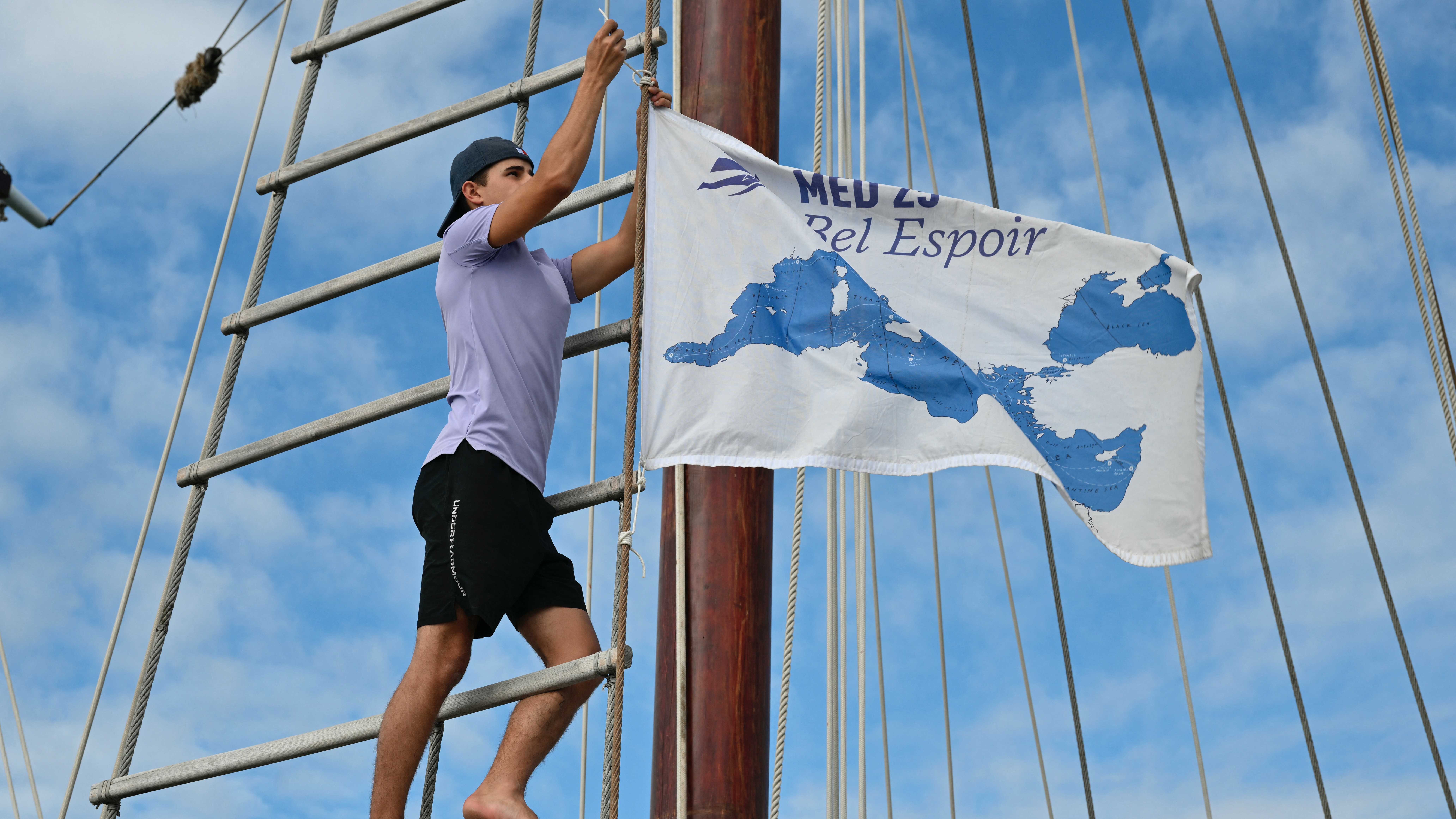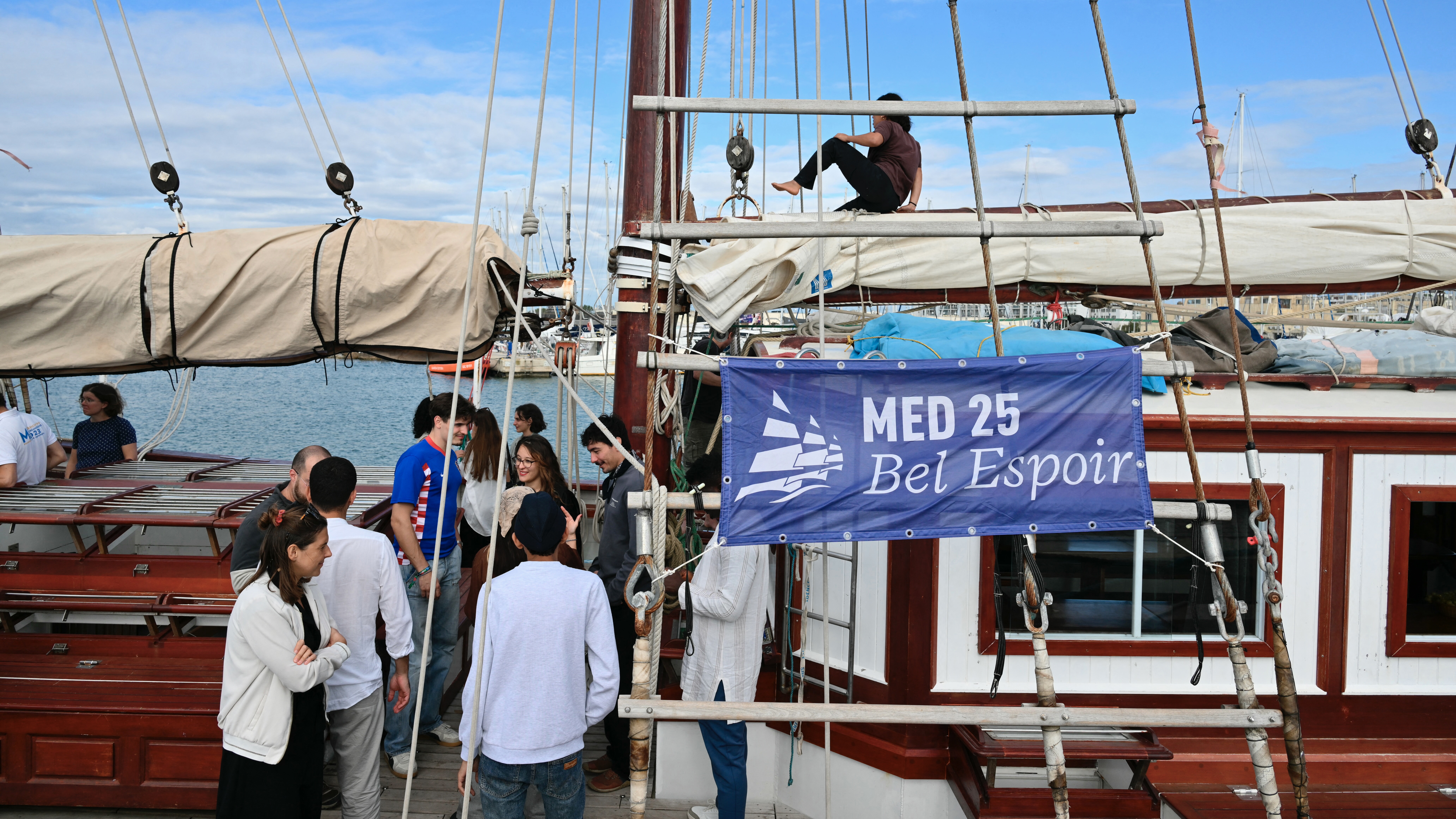 من برشلونة إلى إسطنبول مرورا بقبرص وألبانيا وأثينا، استقبلت هذه السفينة التي صُنّعت عام 1944 ورُمّمت حديثا، منذ مارس نحو 200 شاب وشابة تراوح أعمارهم بين 19 و35 عاما، من ثقافات وديانات مختلفة.