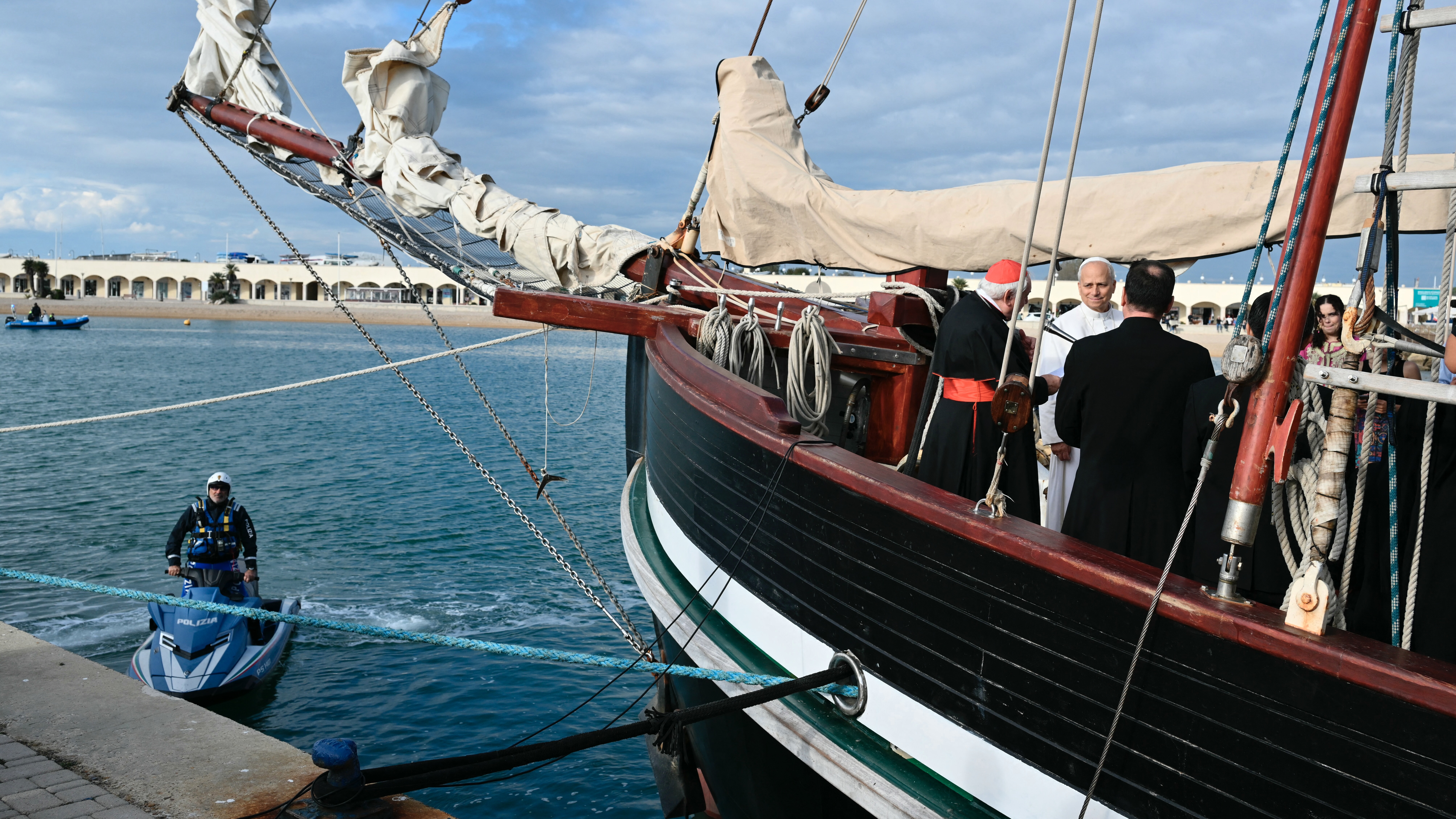 بعد ظهر الجمعة، حرص البابا الأميركي على تشجيعهم على الإصغاء والحوار في "عالم يميل أكثر فأكثر نحو العنف، والكراهية، والانقسام"، خلال زيارته متن السفينة ذات الصواري الثلاث، الراسية في ميناء أوستيا قرب روما، وهي المحطة الأخيرة من الرحلة التي ربطت بين نابولي ومرسيليا في ثماني مراحل.